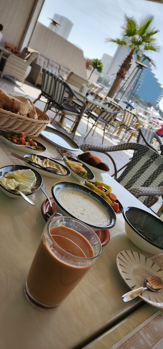 Amazing restaurant & cafe by the Marina. The service is great, especially Ms. Fatima, she is a super nice person. The food was delicious, fresh, well cooked and presented. The portions are big. I give the food 9.5/10. They serve a wide range of Lebanese and Arabic food and many options of beverage, tea pots and coffee.